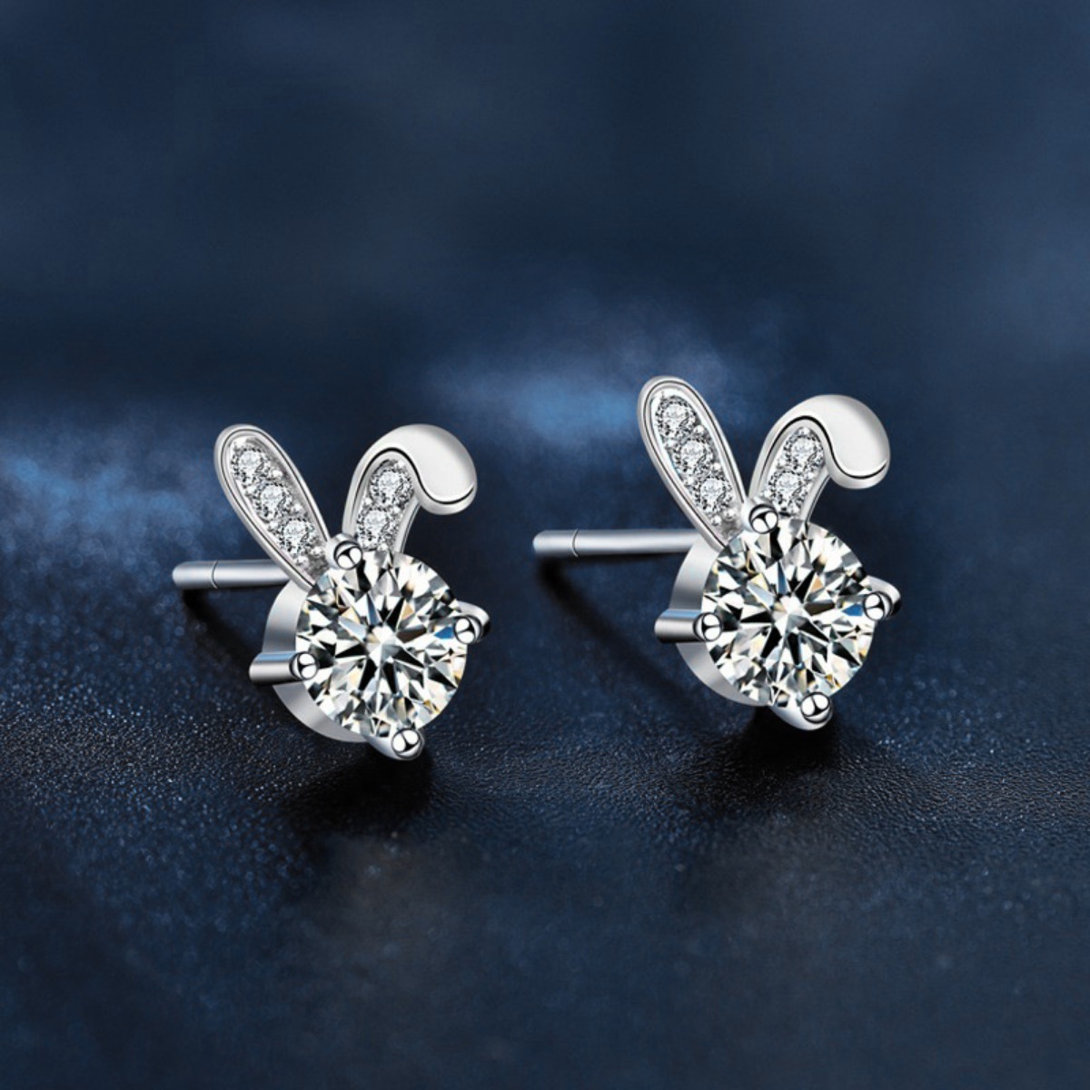 Moissanite 925 Sterling Silver Rabbit Stud Earrings