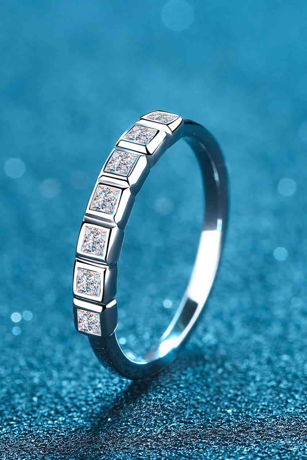 Moissanite Rhodium-Plated Half-Eternity Ring