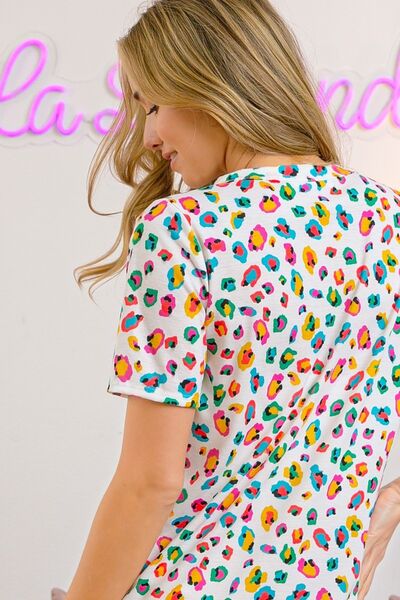 Multi Color Leopard Jersey Shirred V Neck Top