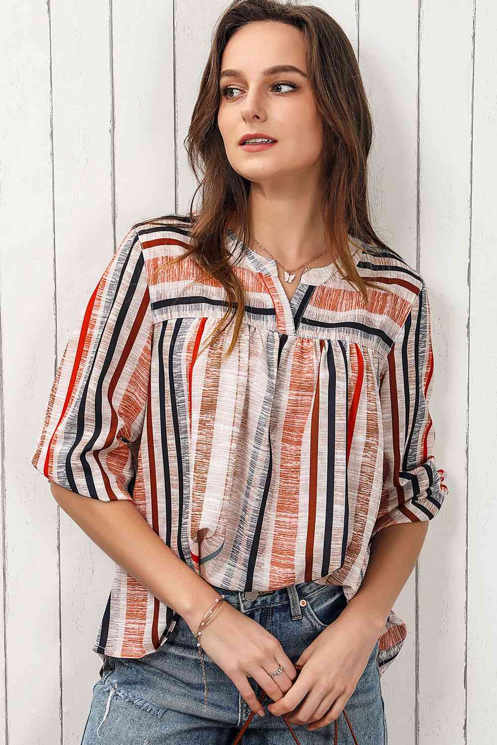 Multicolored Stripe Notched Neck Top