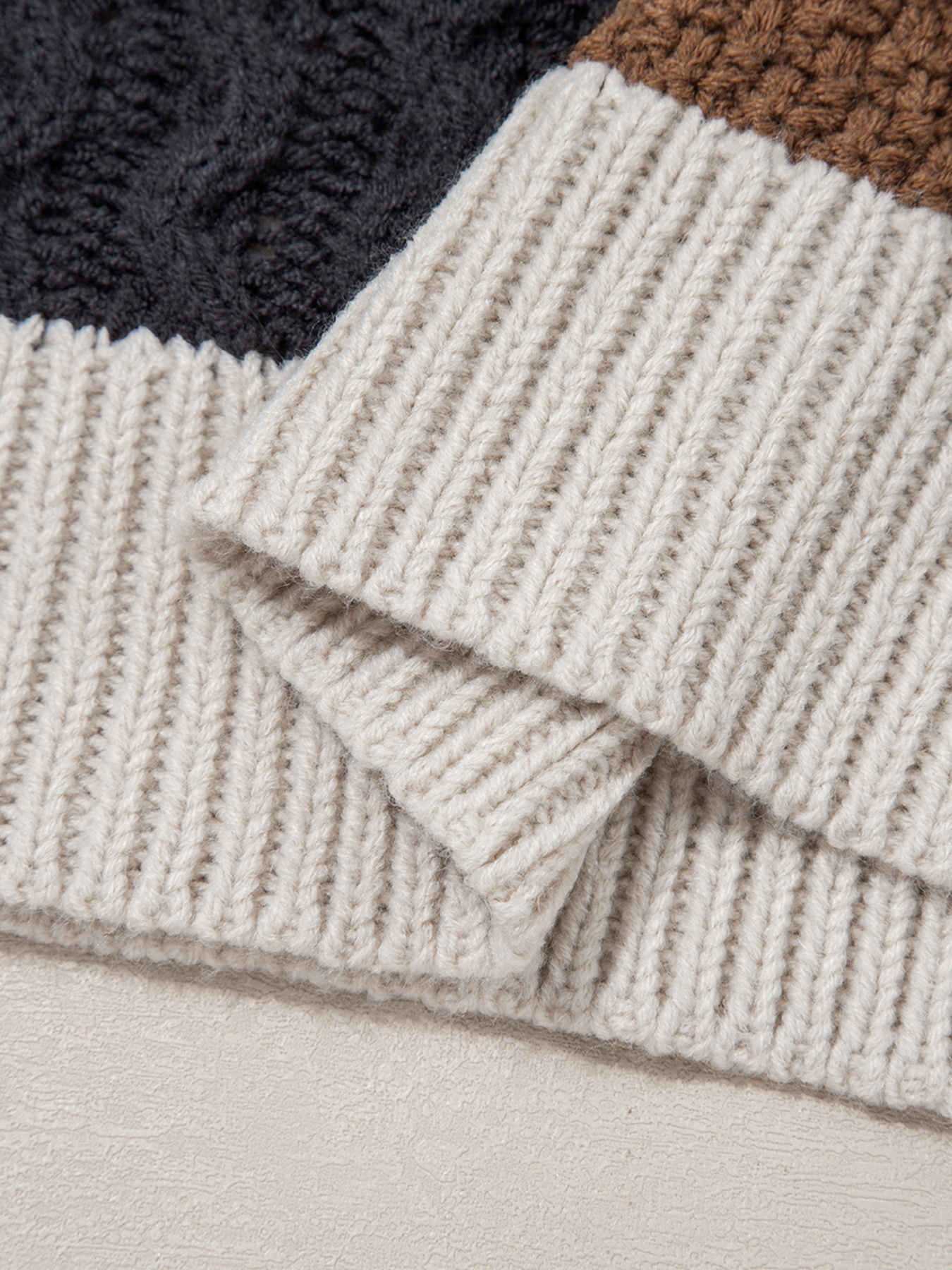 Multicolour Color Block Cable Knit Sleeve Buttons Collared Sweater
