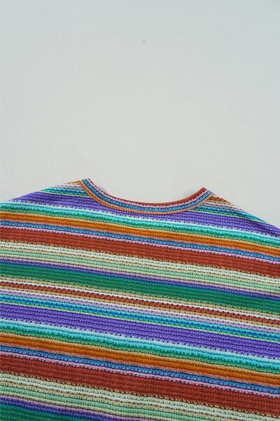 Multicolour Striped Twist Hem Cap Sleeve Top