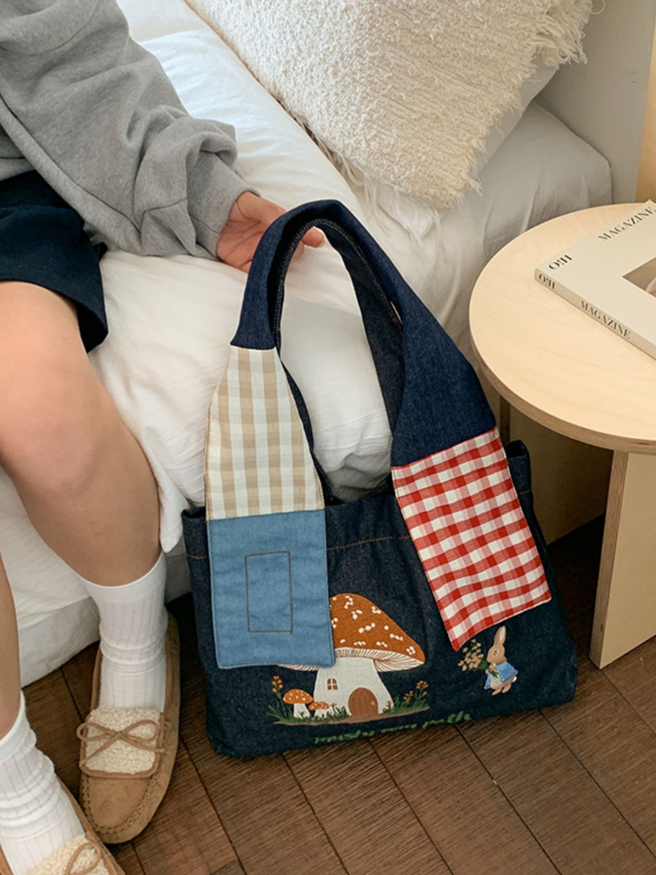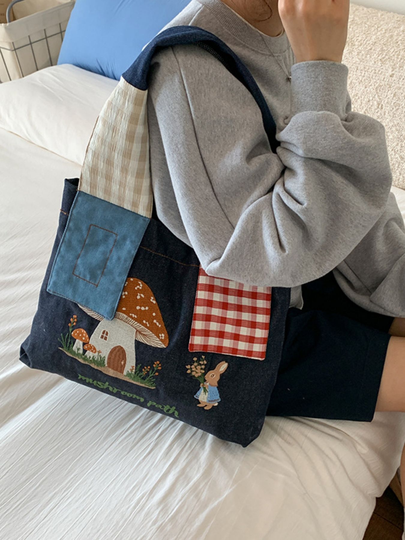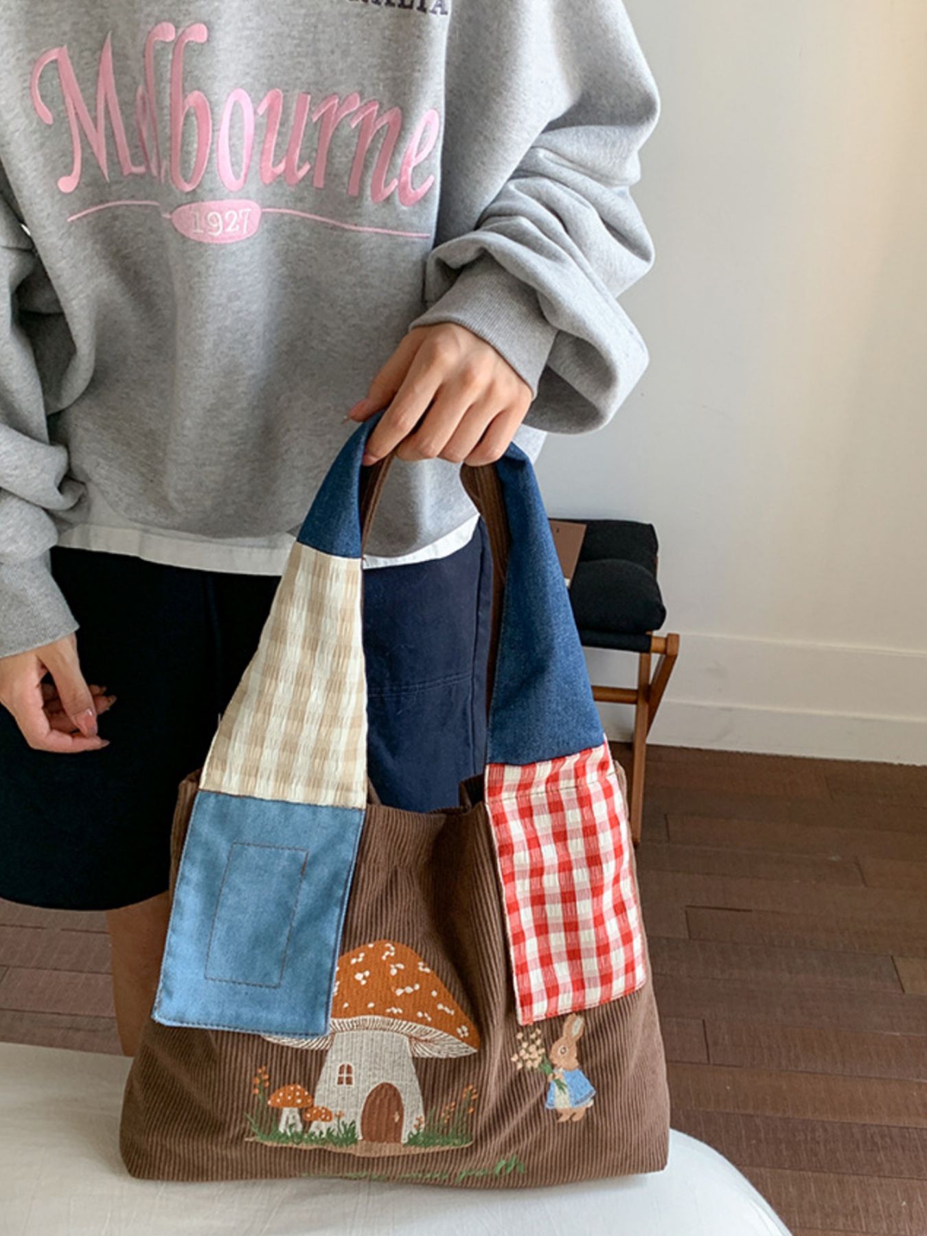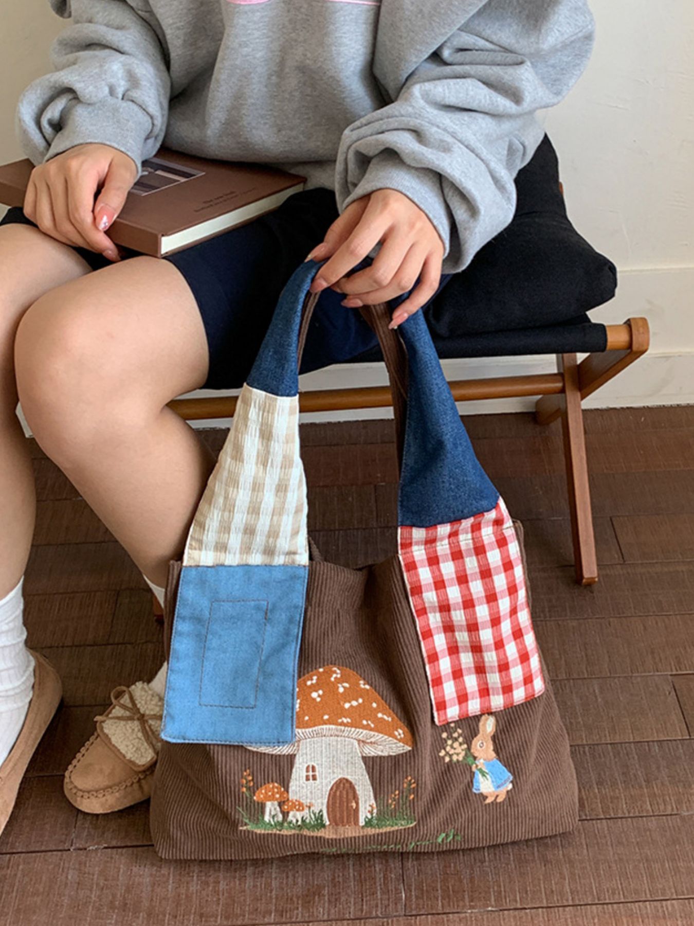 Mushroom Corduroy Tote Bag