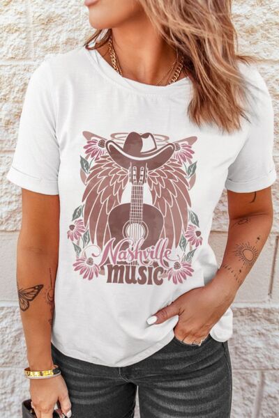 Nashville Music Guitar Wings Graphic Round Neck T-Shirt
