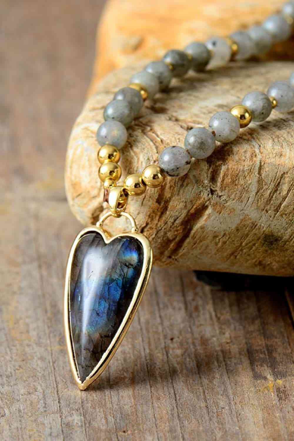 Natural Stone Pendant Beaded Necklace