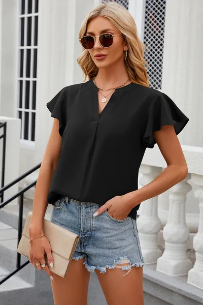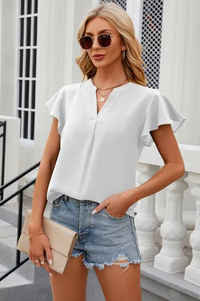 Notched Cap Sleeve T-Shirt