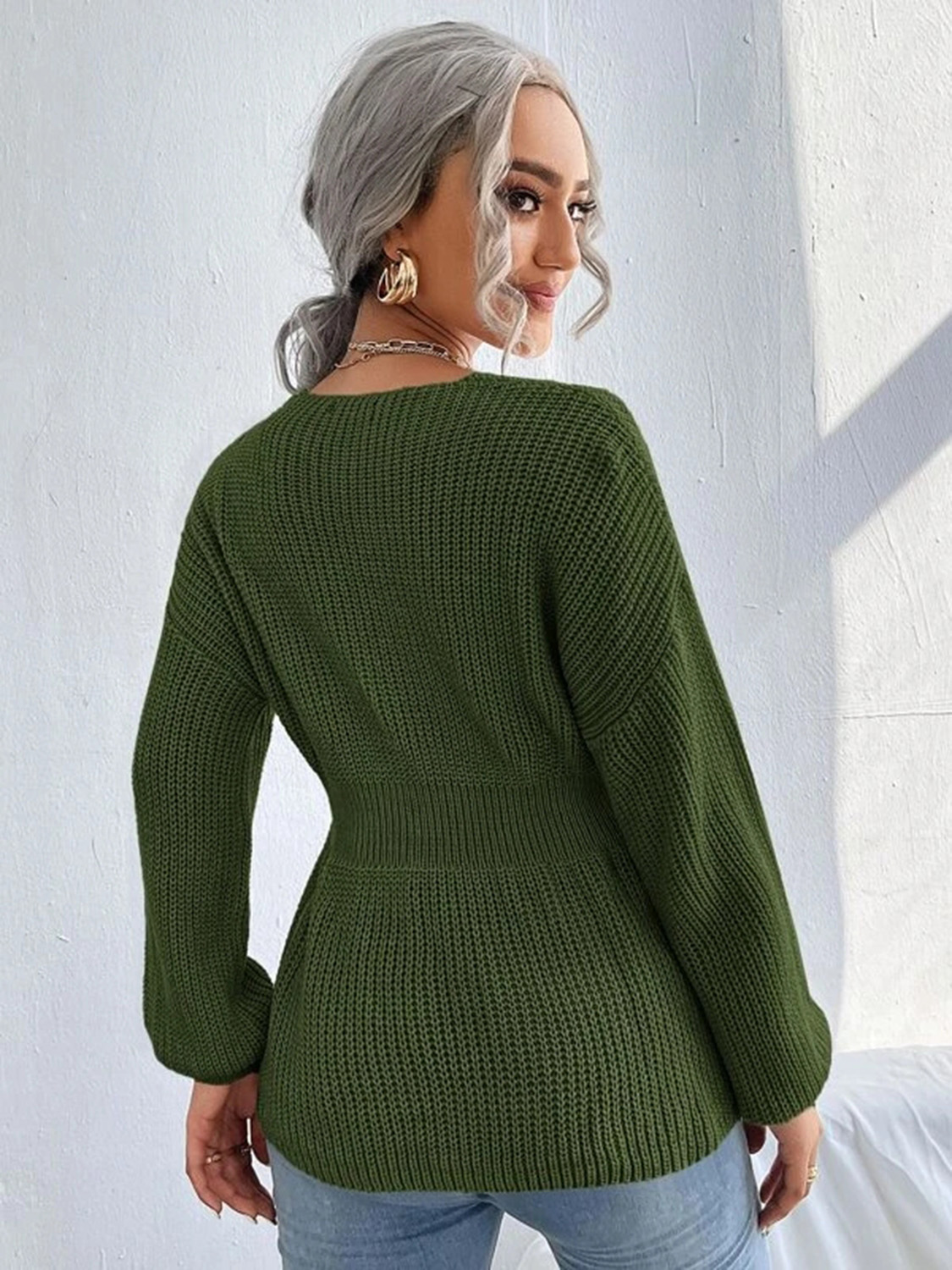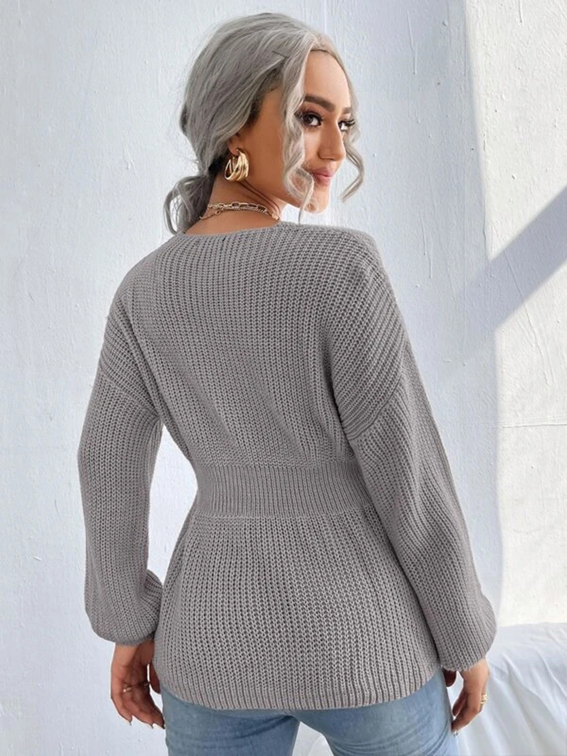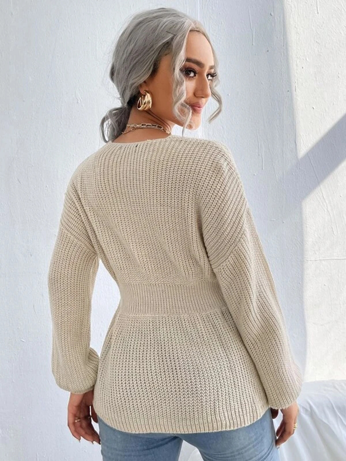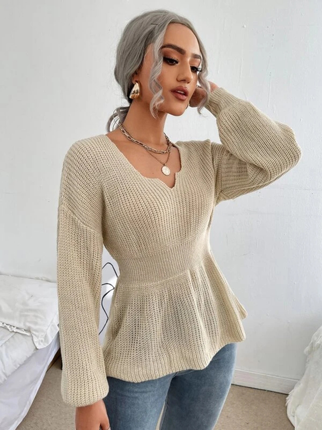 Notched Dropped Shoulder Knit Top