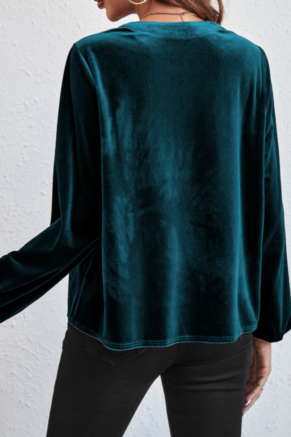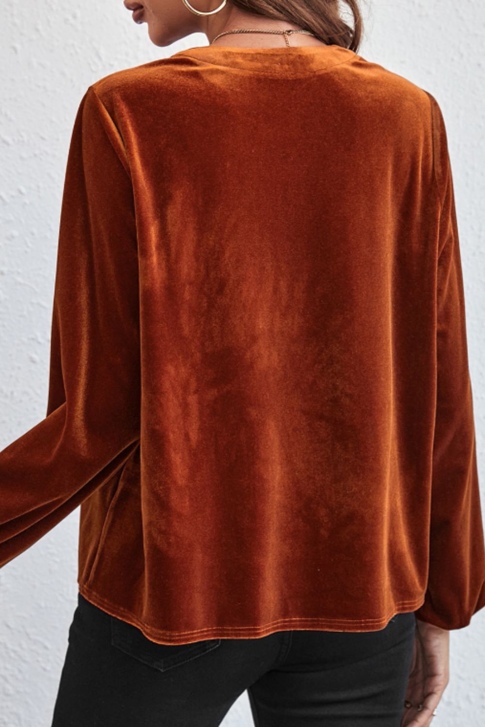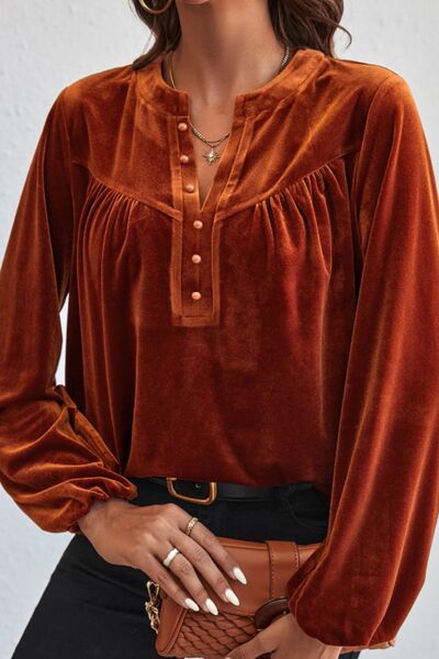 Notched Long Sleeve Velvet Top