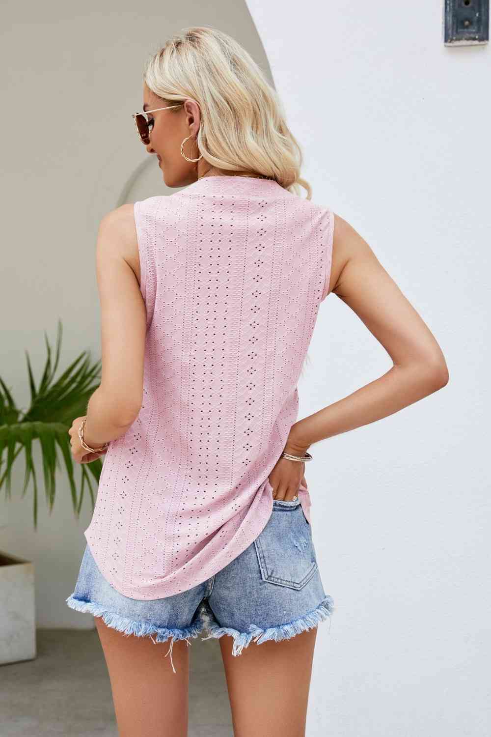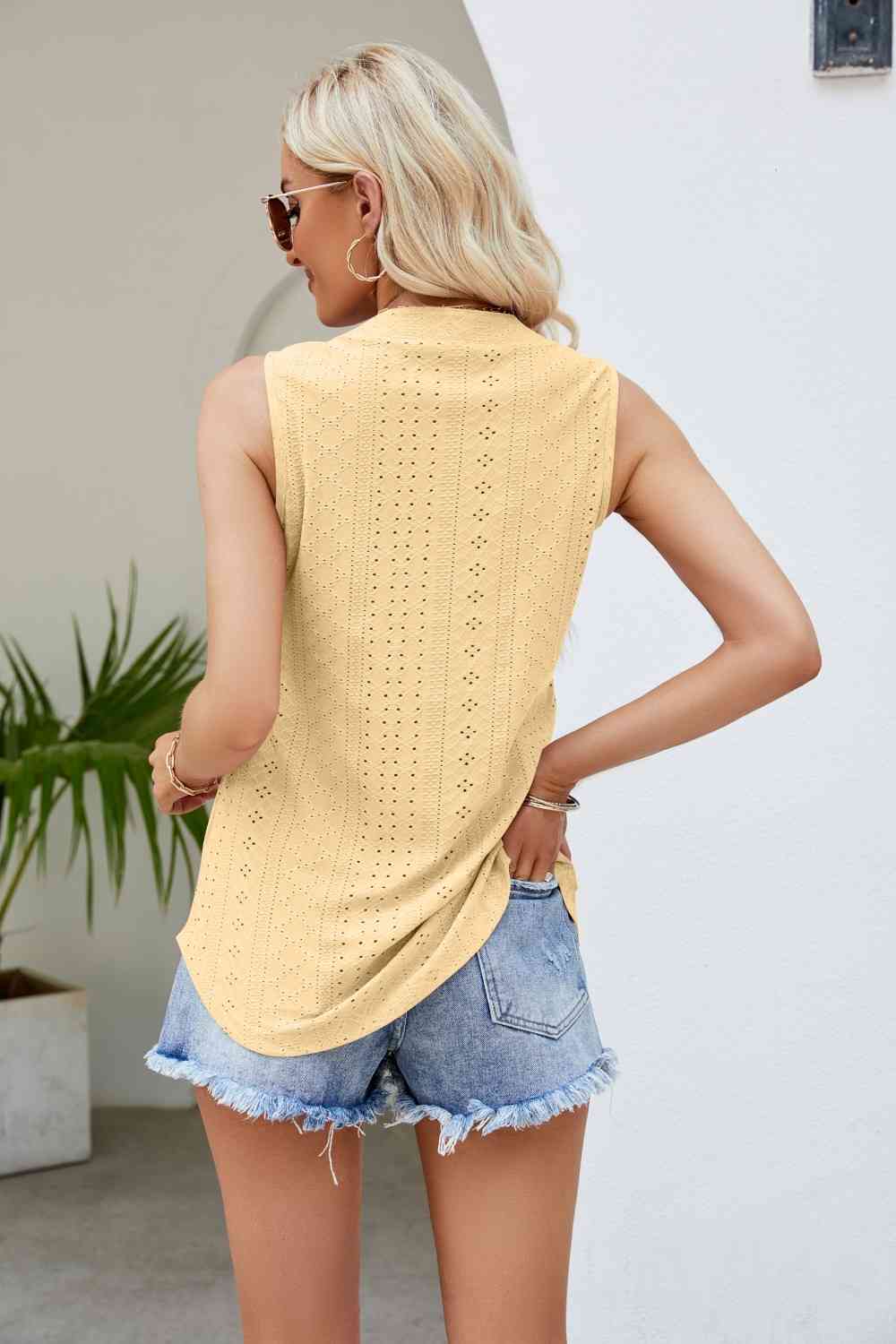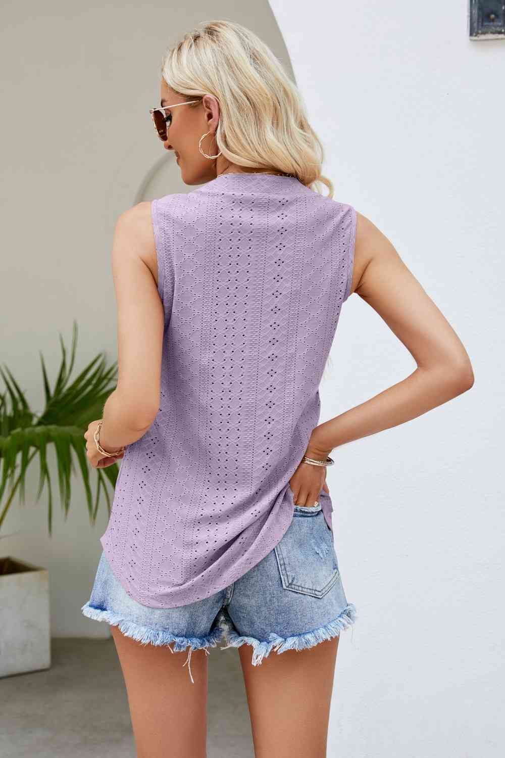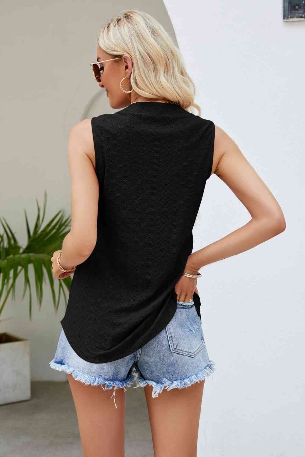 Notched Neck Curved Hem Eyelet Tank