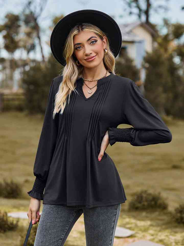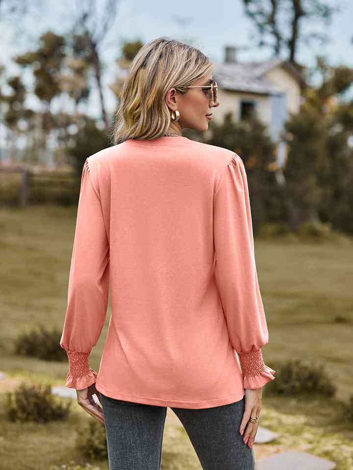 Notched Neck Flounce Sleeve Blouse