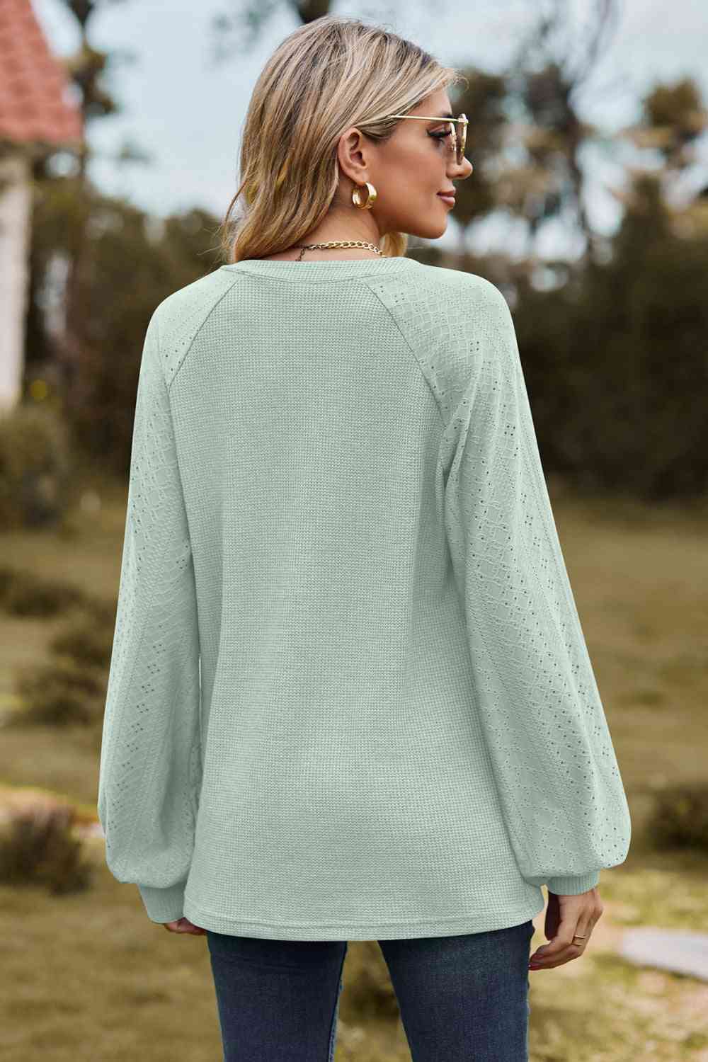 Notched Neck Raglan Sleeve Blouse