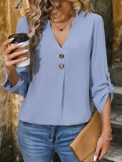 Notched Roll-Tab Sleeve Blouse