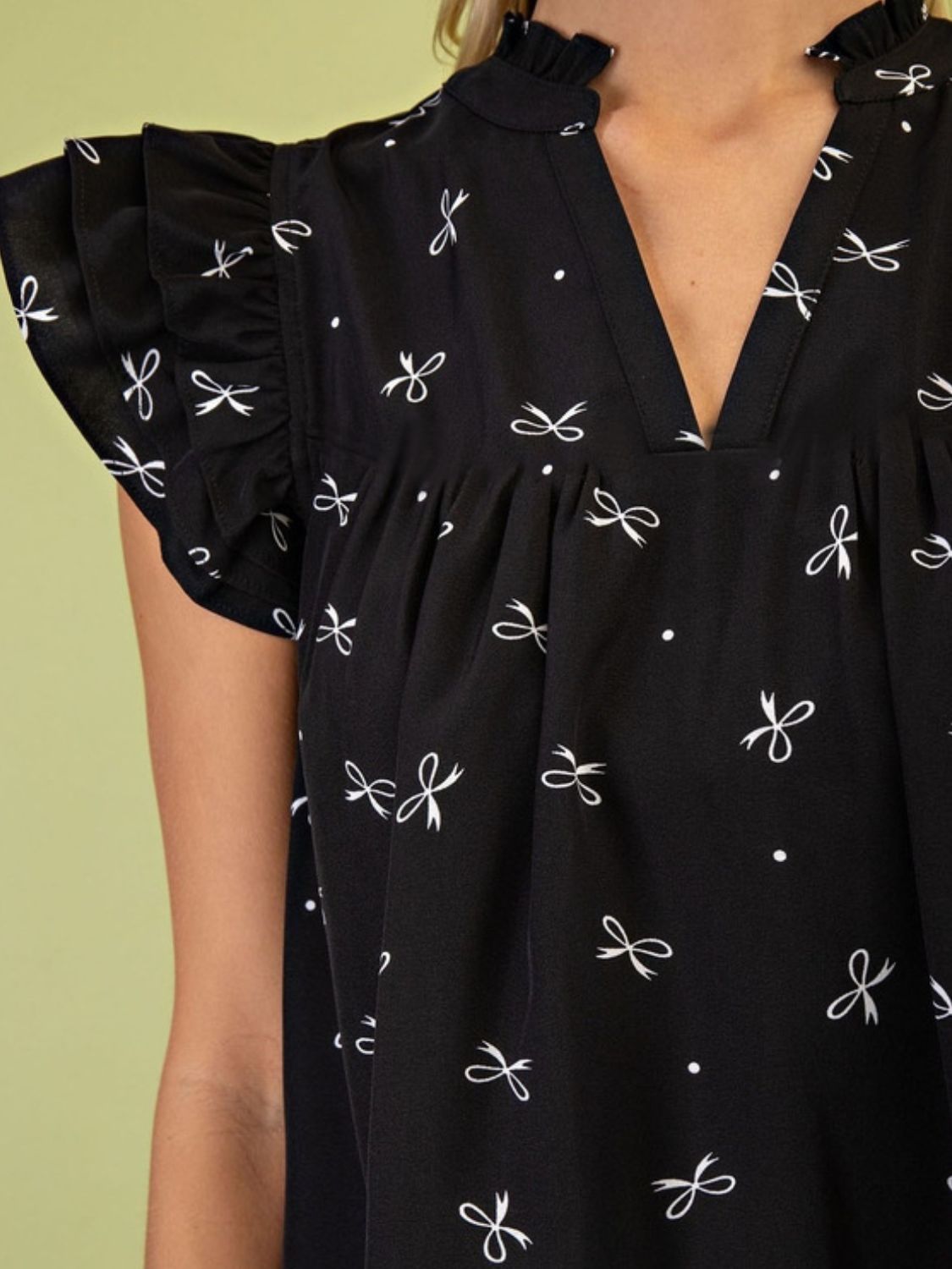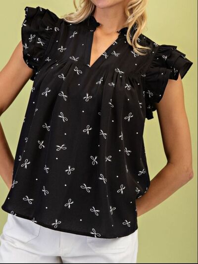 Notched Ruffled Cap Sleeve Blouse