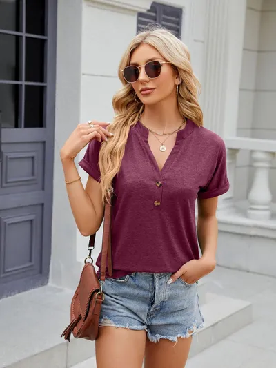 Notched Short Sleeve T-Shirt