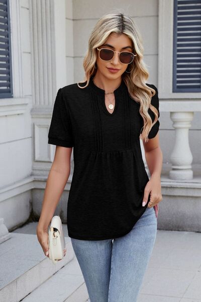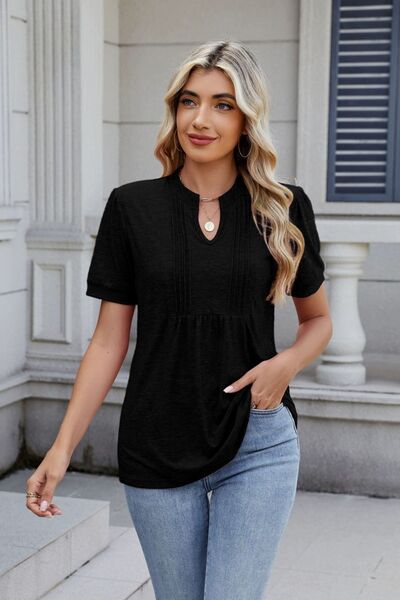 Notched Short Sleeve Top