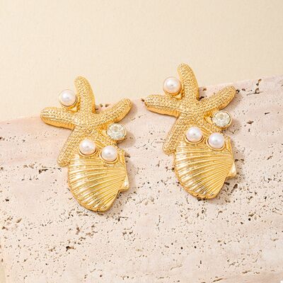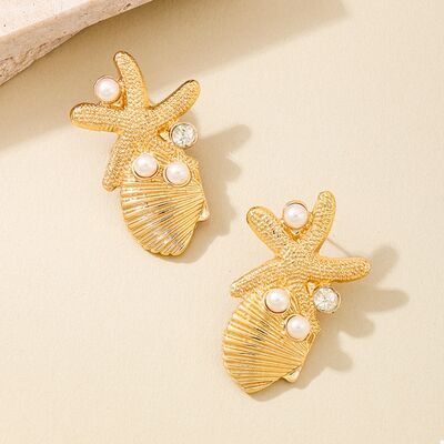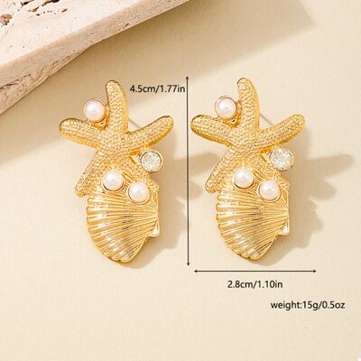 Ocean Starfish Shell Synthetic Pearl Drop Earrings