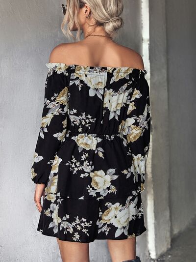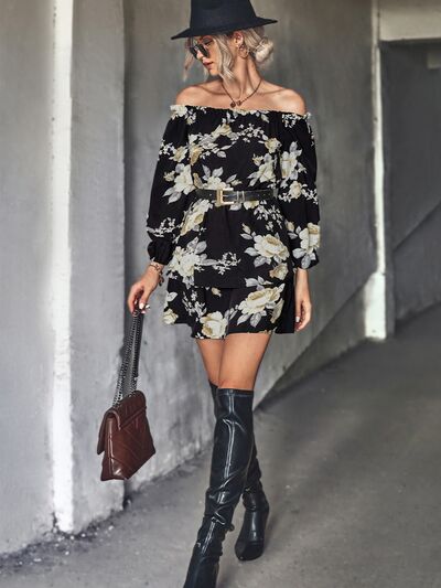Off-Shoulder Floral Print Long Sleeve Mini Dress