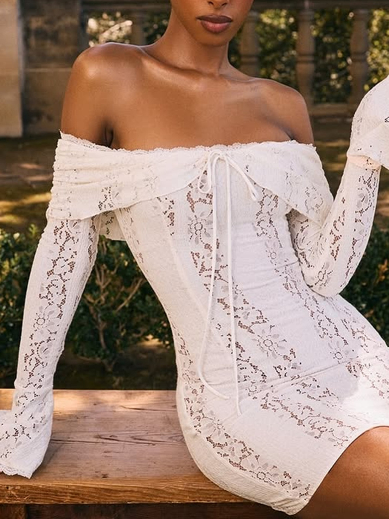 Off-Shoulder Lace Mini Dress