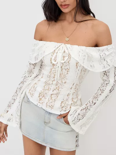Off-Shoulder Lace Top with Bell Sleeves