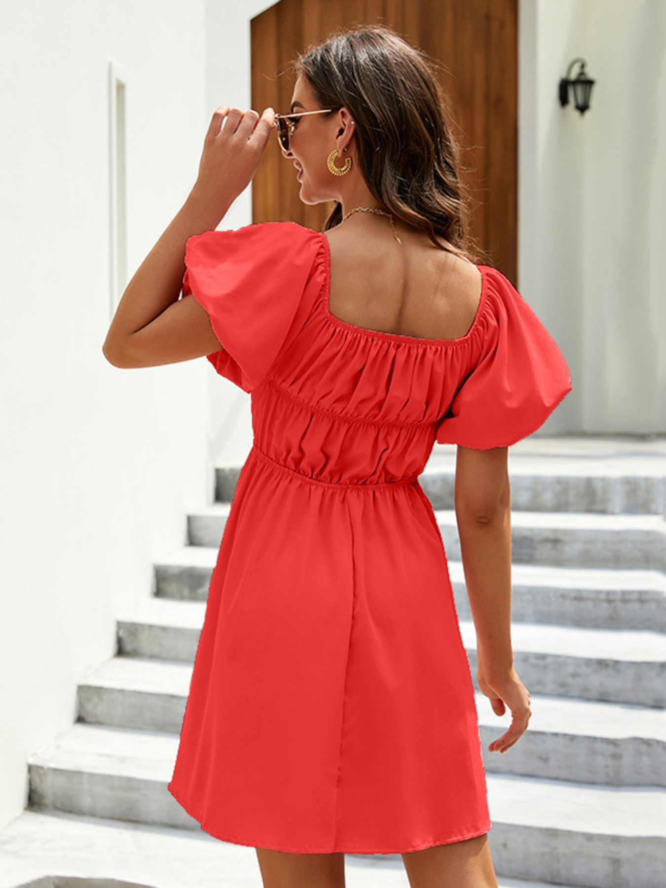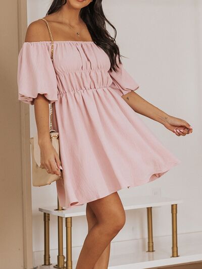 Off-Shoulder Puff Sleeve Mini Dress