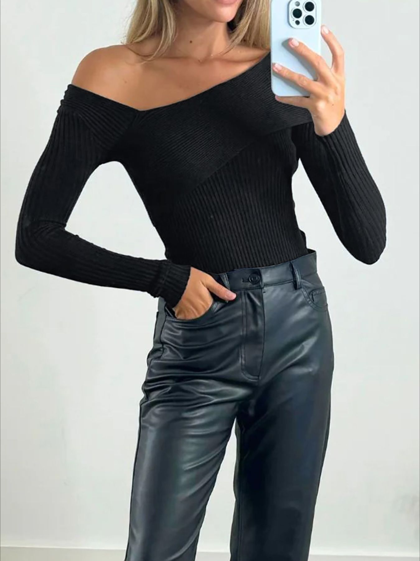 Off-Shoulder Ribbed Knit Top