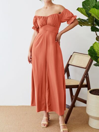 Off-Shoulder Short Sleeve Wide Leg Jumpsuit