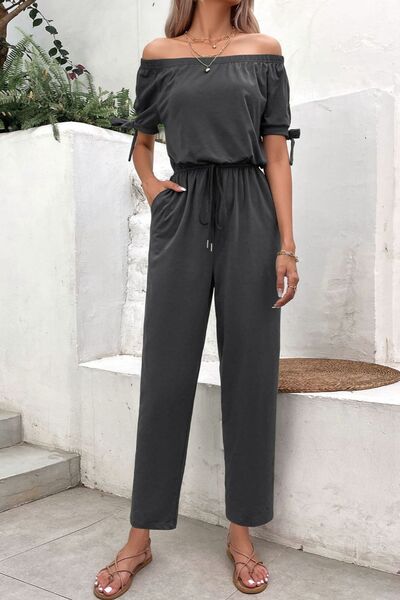 Off-Shoulder Tie Cuff Jumpsuit with Pockets