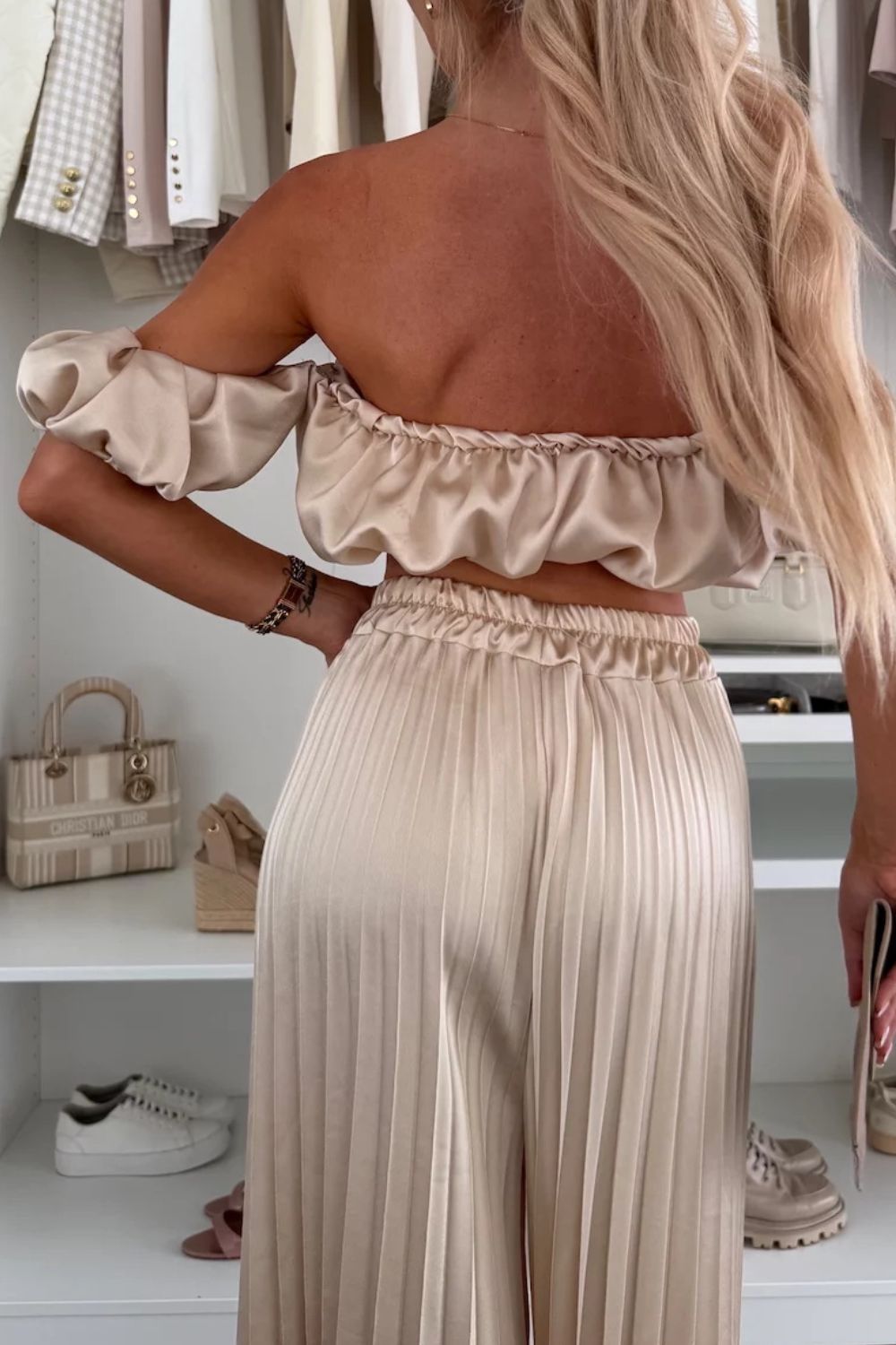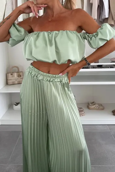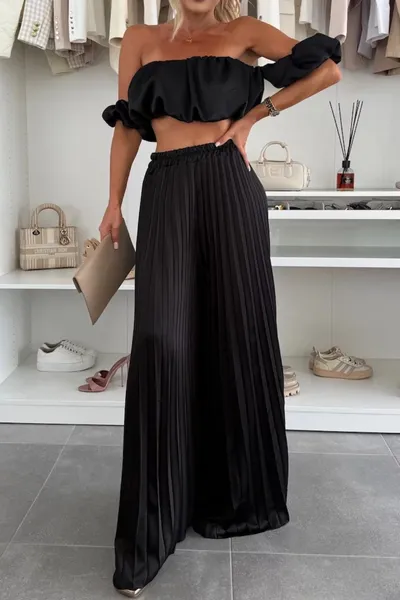 Off-Shoulder Top and Pleated Pants Set