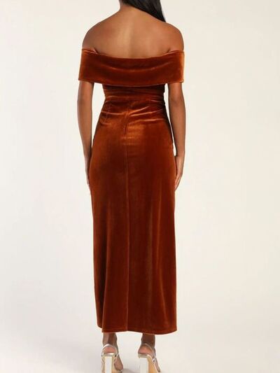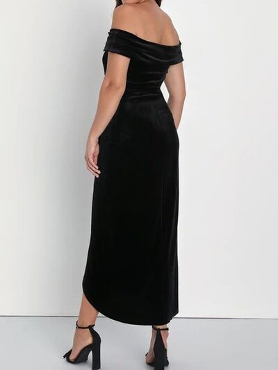 Off-Shoulder Wrap Dress with Side Slit