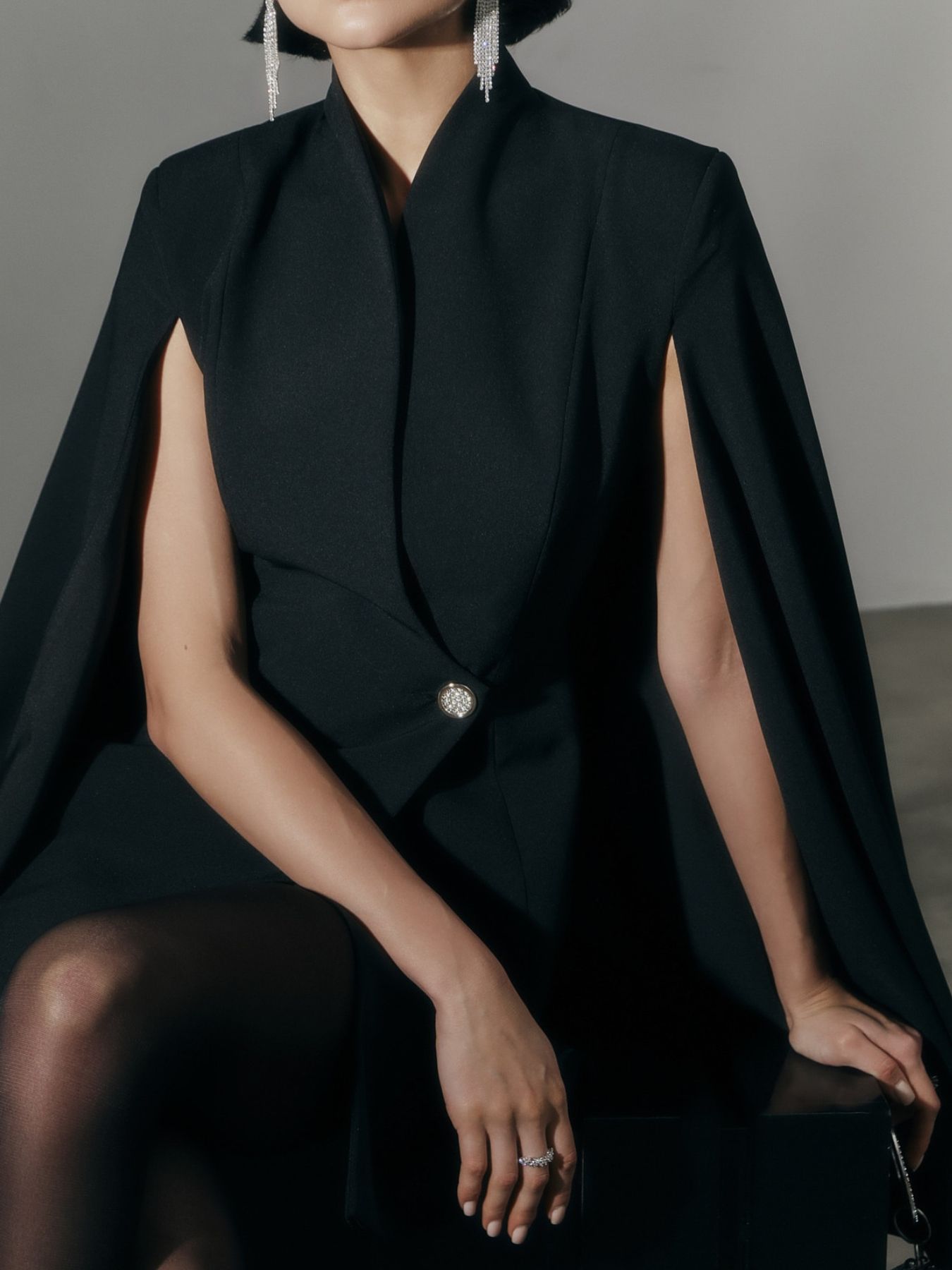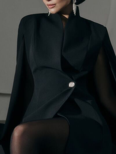 One Button Fitted Mini Blazer Dress with Cape Sleeves
