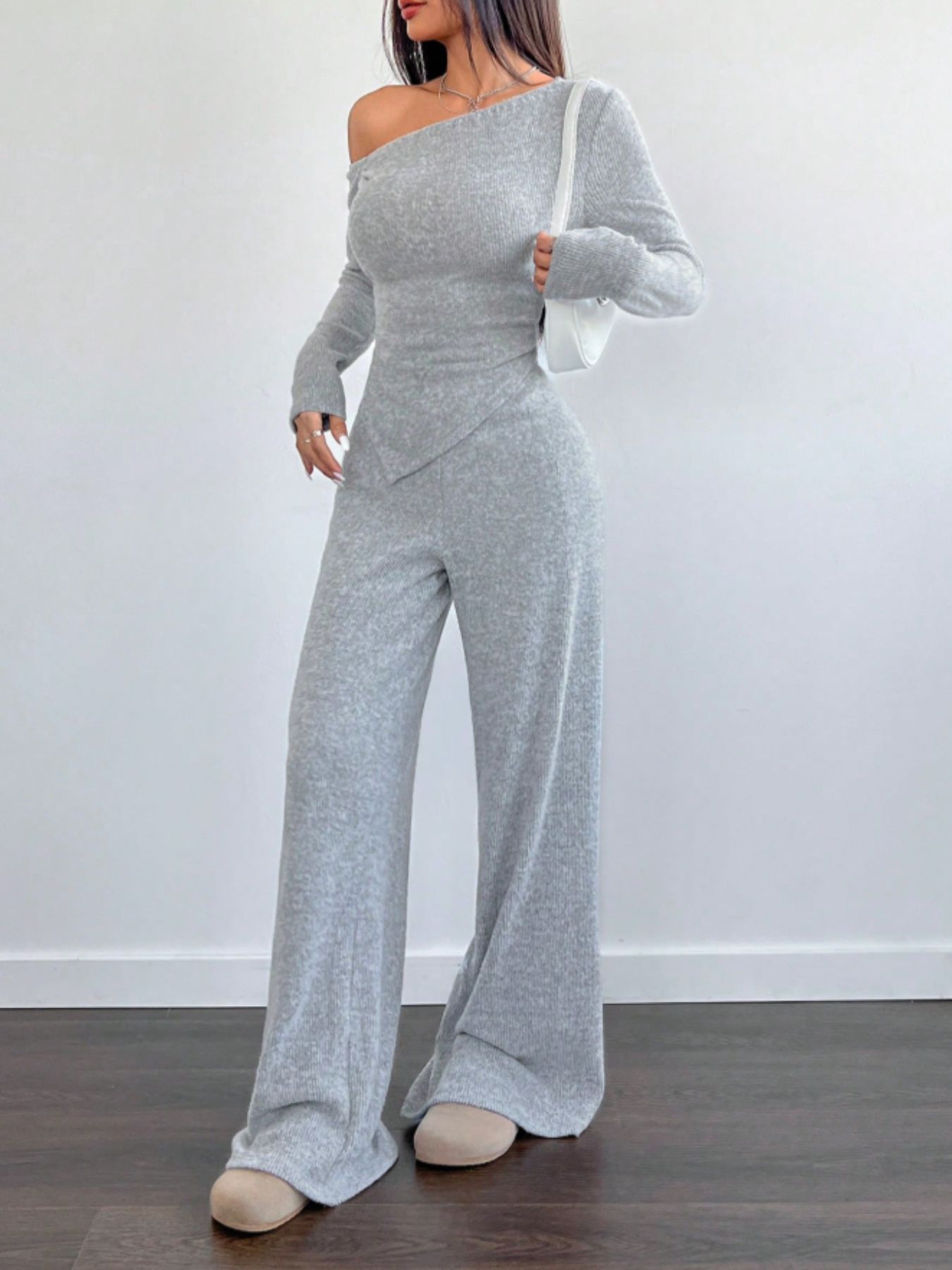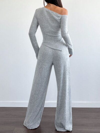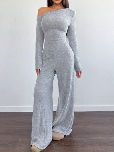 One-Shoulder Long Sleeve Top and Pants Set