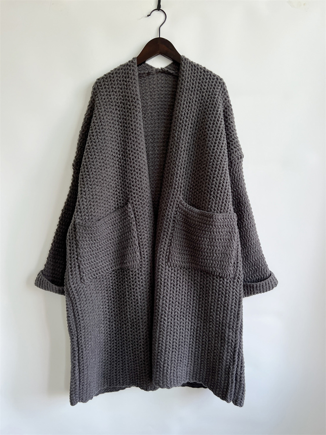Open Front Long Sleeve Cardigan with Pockets