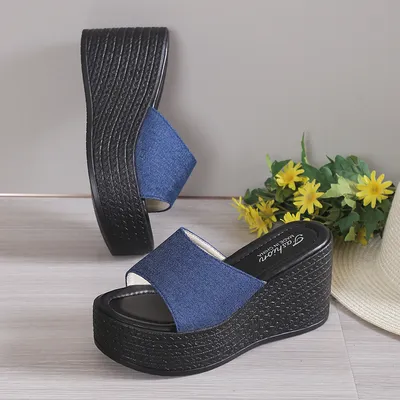 Open Toe Mid Heel Wedge Sandals