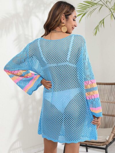 Openwork Contrast Long Sleeve Cover-Up