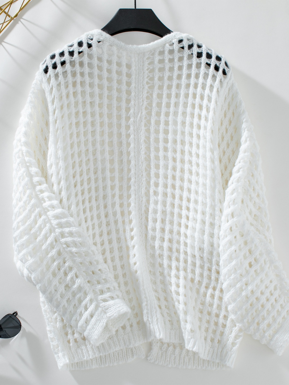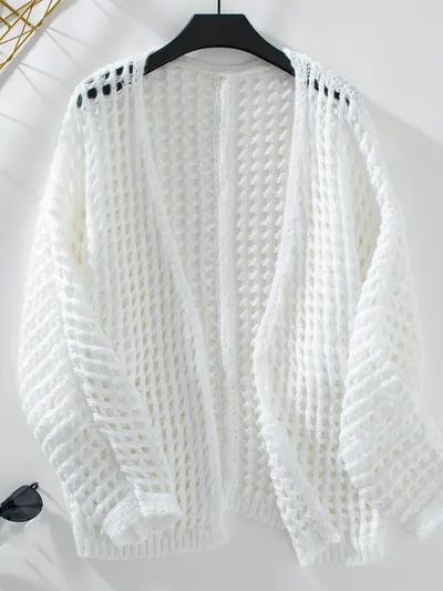 Openwork Open Front Long Sleeve Cardigan