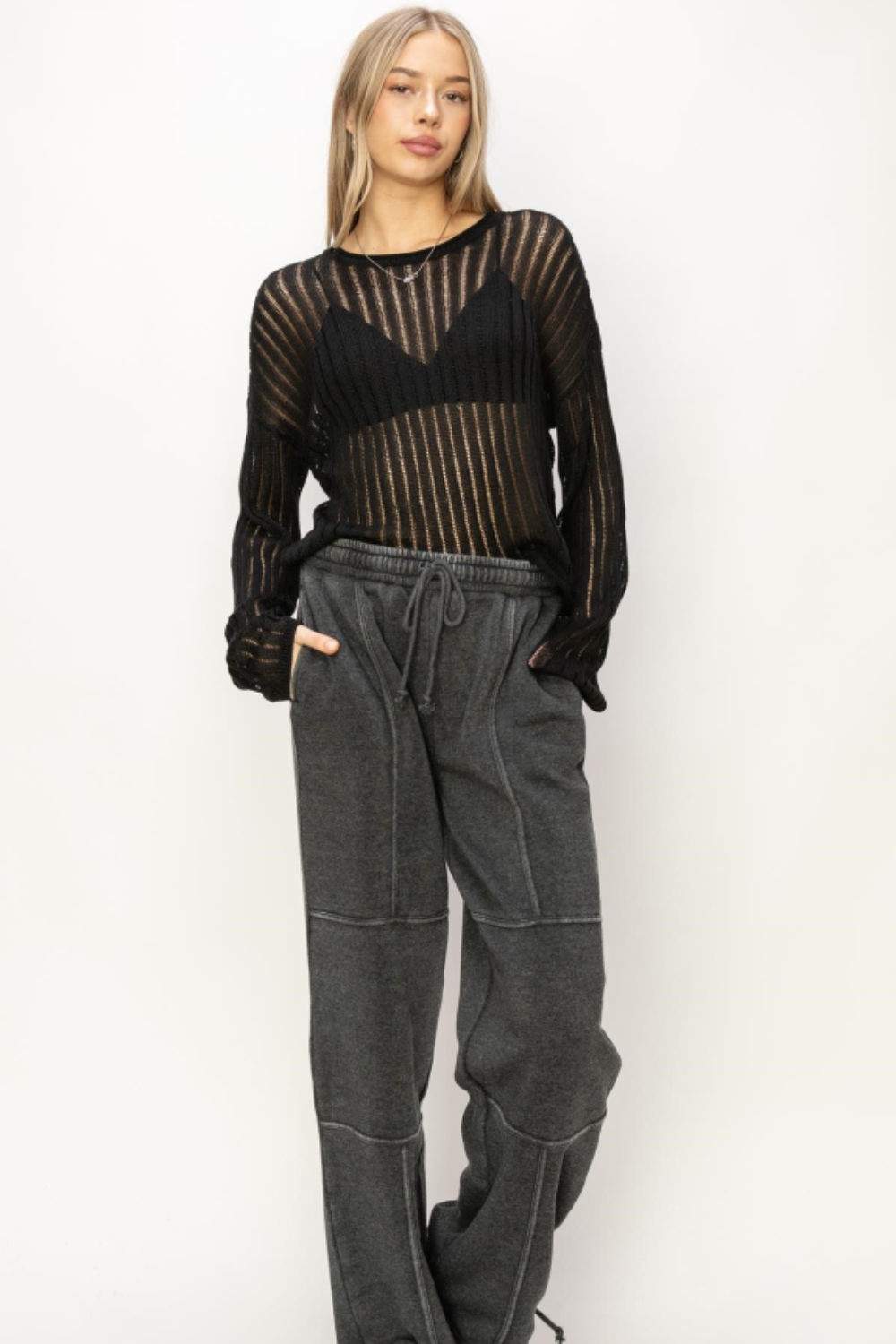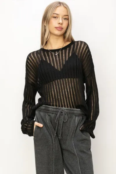 Openwork Ribbed Long Sleeve Knit Top