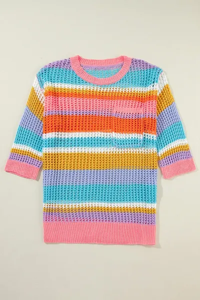 Openwork Round Neck Dropped Shoulder Knit Cover-Up