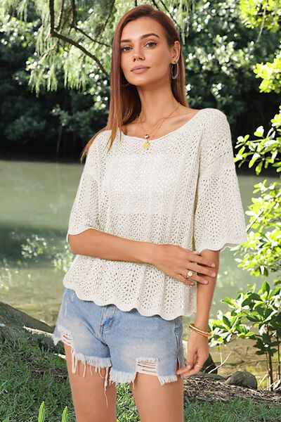 Openwork Round Neck Half Sleeve Knit Top