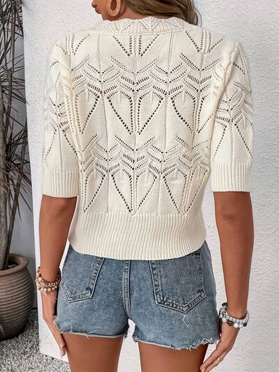 Openwork Round Neck Half Sleeve Sweater