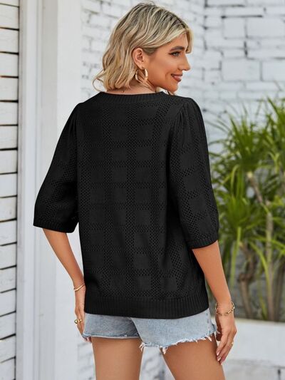 Openwork Round Neck Knit Top