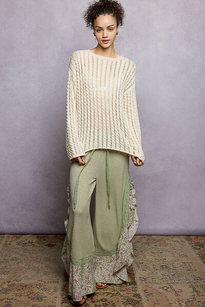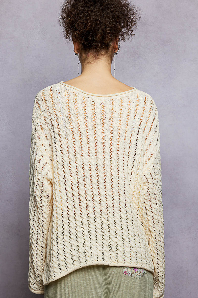 Openwork Round Neck Knit Top with Shiny Detail