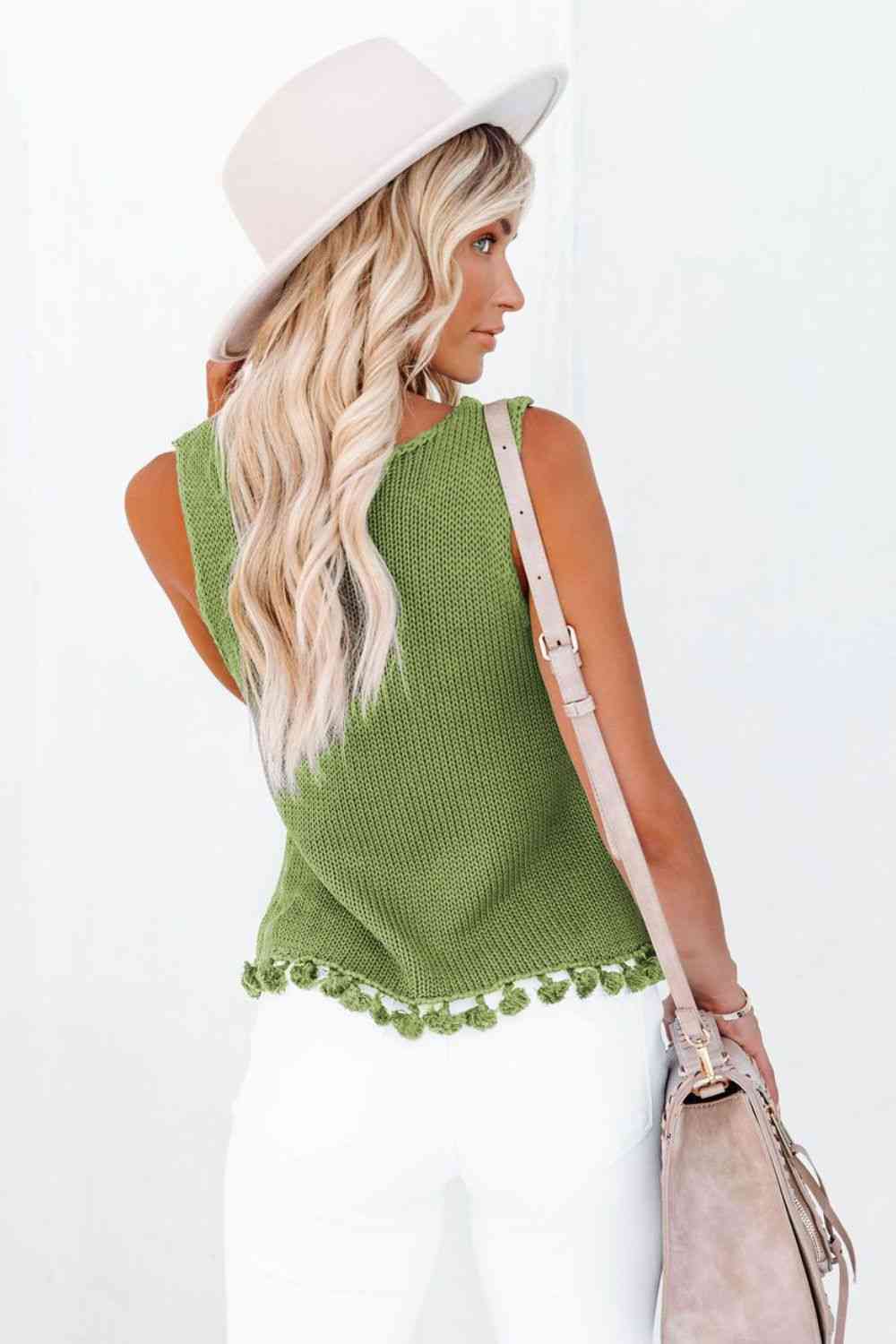 Openwork Tassel Hem Knit Tank