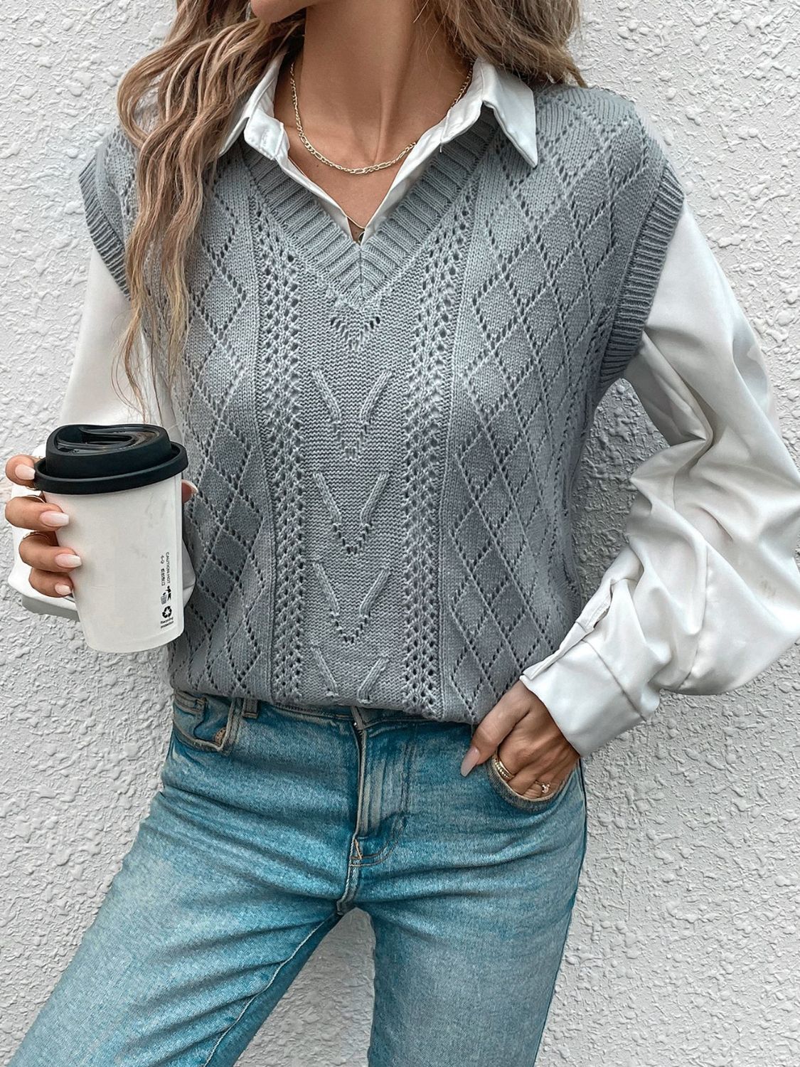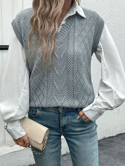 Openwork V-Neck Sweater Vest