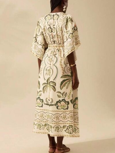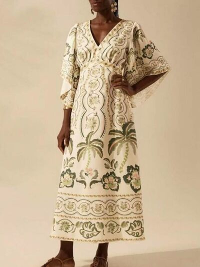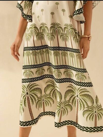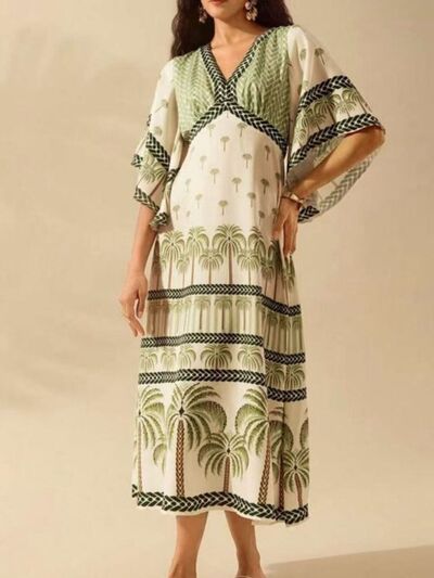 Palm Print V-Neck Midi Dress