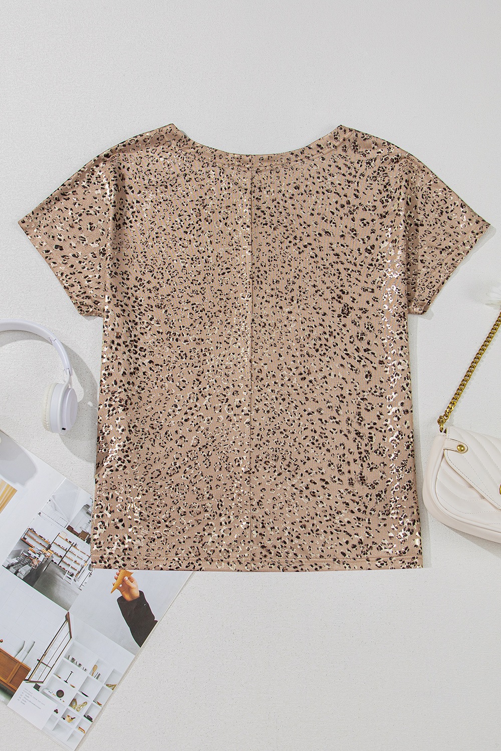 Parchment Shimmer Leopard Print Dolman Sleeve T Shirt