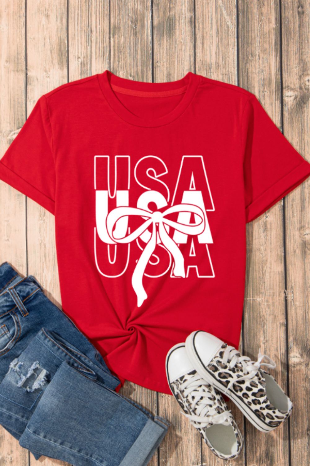 Patriotic USA Bow Graphic T-Shirt