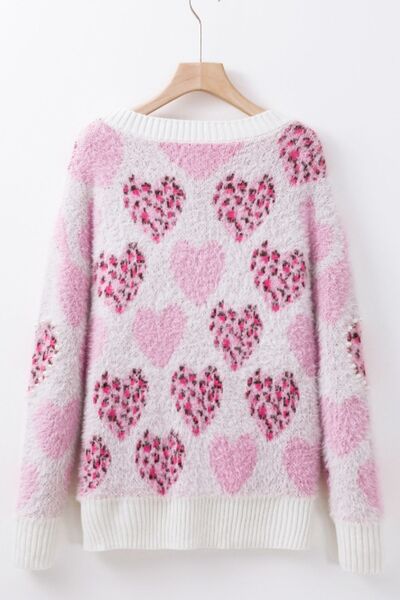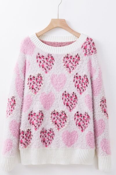 Pearl Detail Heart Round Neck Sweater