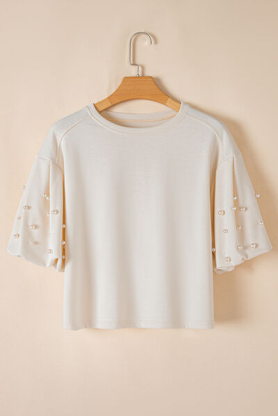 Pearl Detail Round Neck Half Sleeve Blouse
