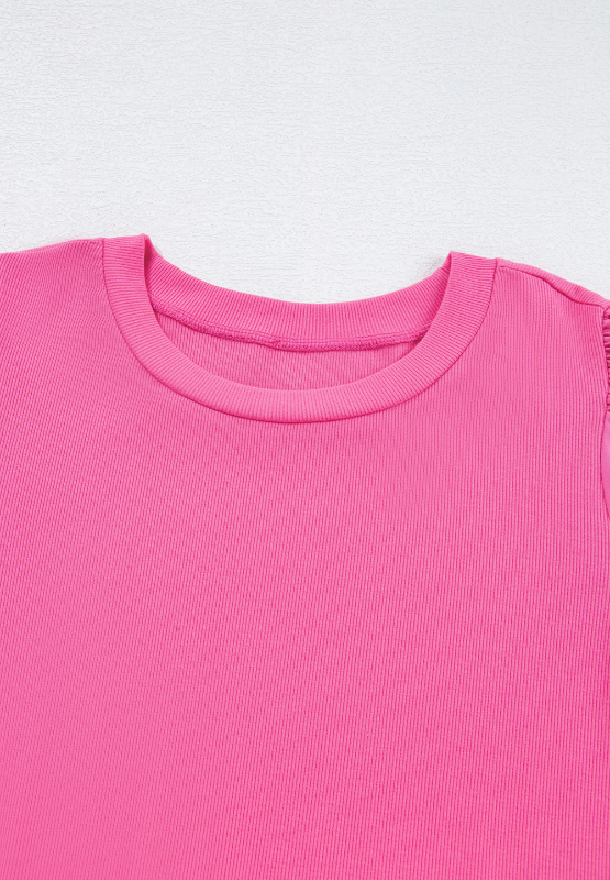 Pearl Detail Round Neck Puff Sleeve Blouse