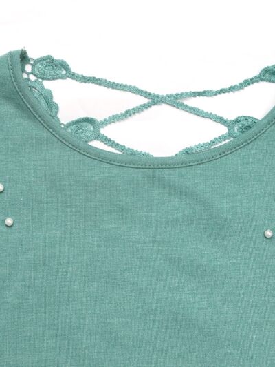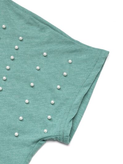 Pearl Detail Round Neck Short Sleeve T-Shirt